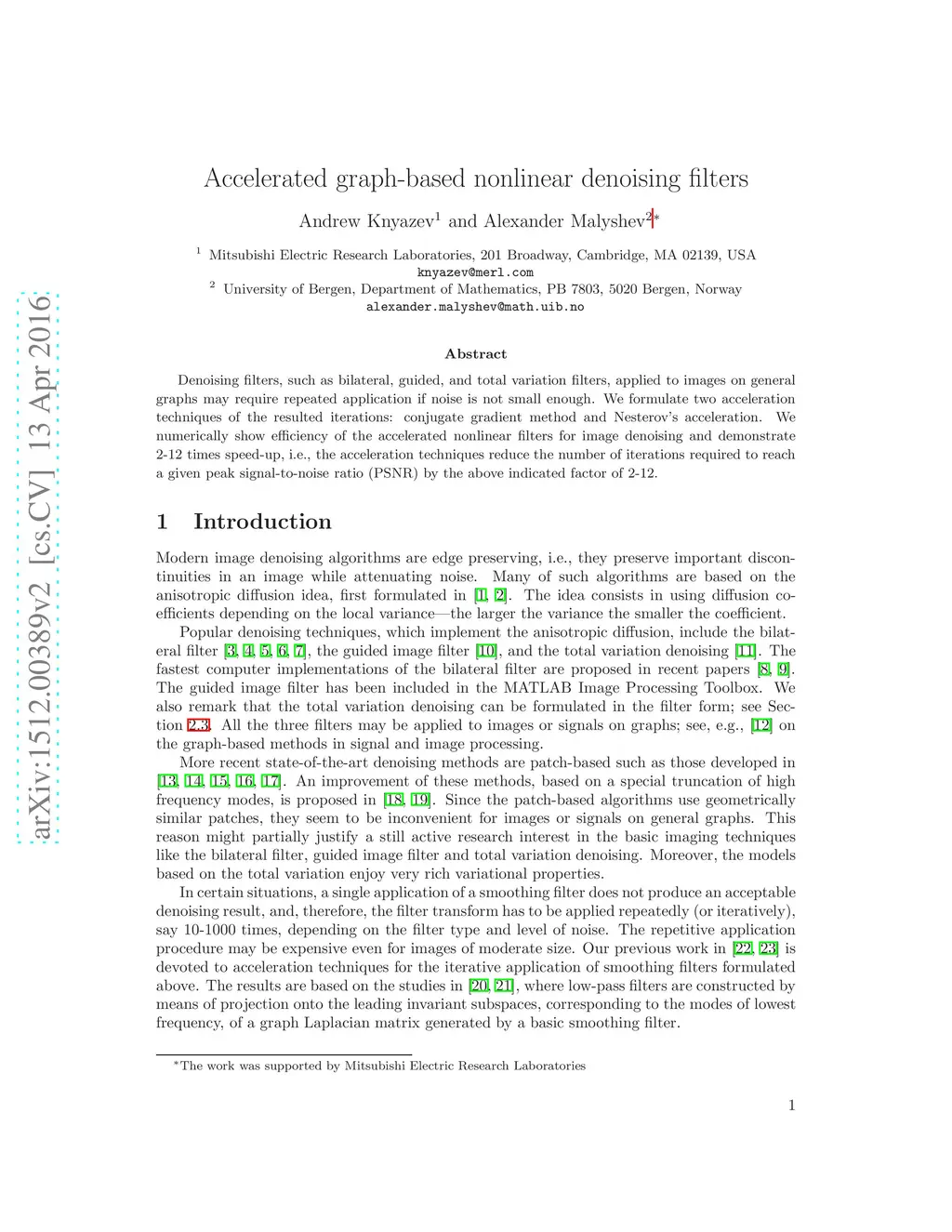 Denoising filters, such as bilateral, guided, and total variation filters, applied to images on general graphs may require repeated application if noise is not small enough. We formulate two acceleration techniques of the resulted iterations: conjugate gradient method and Nesterov's acceleration. We numerically show efficiency of the accelerated nonlinear filters for image denoising and demonstrate 2-12 times speed-up, i.e., the acceleration techniques reduce the number of iterations required to reach a given peak signal-to-noise ratio (PSNR) by the above indicated factor of 2-12.