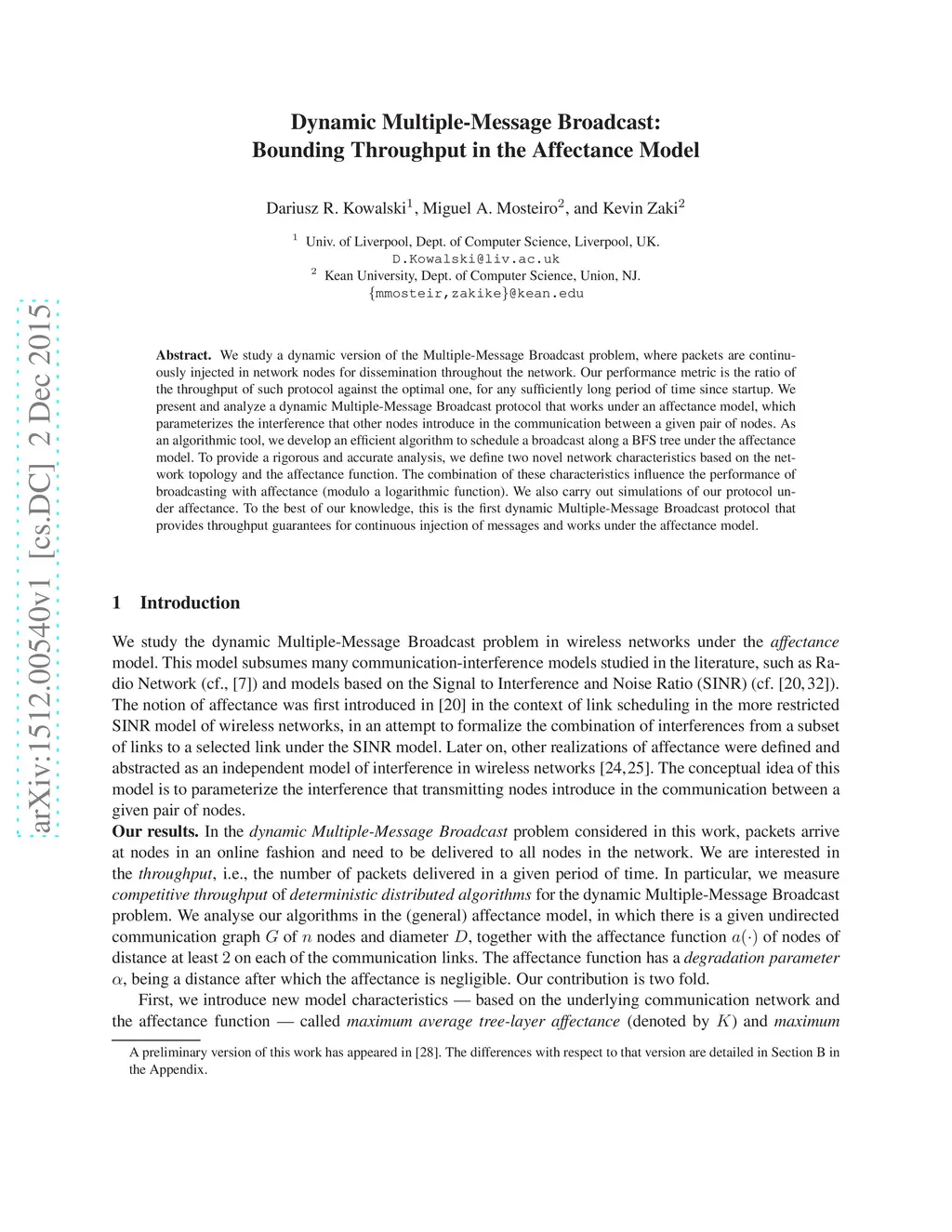 We study a dynamic version of the Multiple-Message Broadcast problem, where packets are continuously injected in network nodes for dissemination throughout the network. Our performance metric is the ratio of the throughput of such protocol against the optimal one, for any sufficiently long period of time since startup. We present and analyze a dynamic Multiple-Message Broadcast protocol that works under an affectance model, which parameterizes the interference that other nodes introduce in the communication between a given pair of nodes. As an algorithmic tool, we develop an efficient algorithm to schedule a broadcast along a BFS tree under the affectance model. To provide a rigorous and accurate analysis, we define two novel network characteristics based on the network topology and the affectance function. The combination of these characteristics influence the performance of broadcasting with affectance (modulo a logarithmic function). We also carry out simulations of our protocol under affectance. To the best of our knowledge, this is the first dynamic Multiple-Message Broadcast protocol that provides throughput guarantees for continuous injection of messages and works under the affectance model.