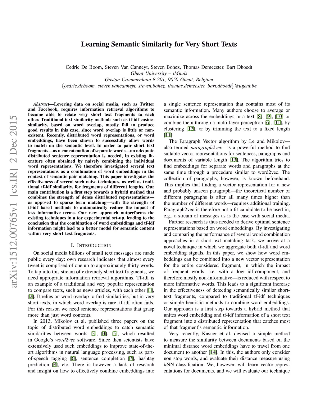 Learning Semantic Similarity for Very Short Texts