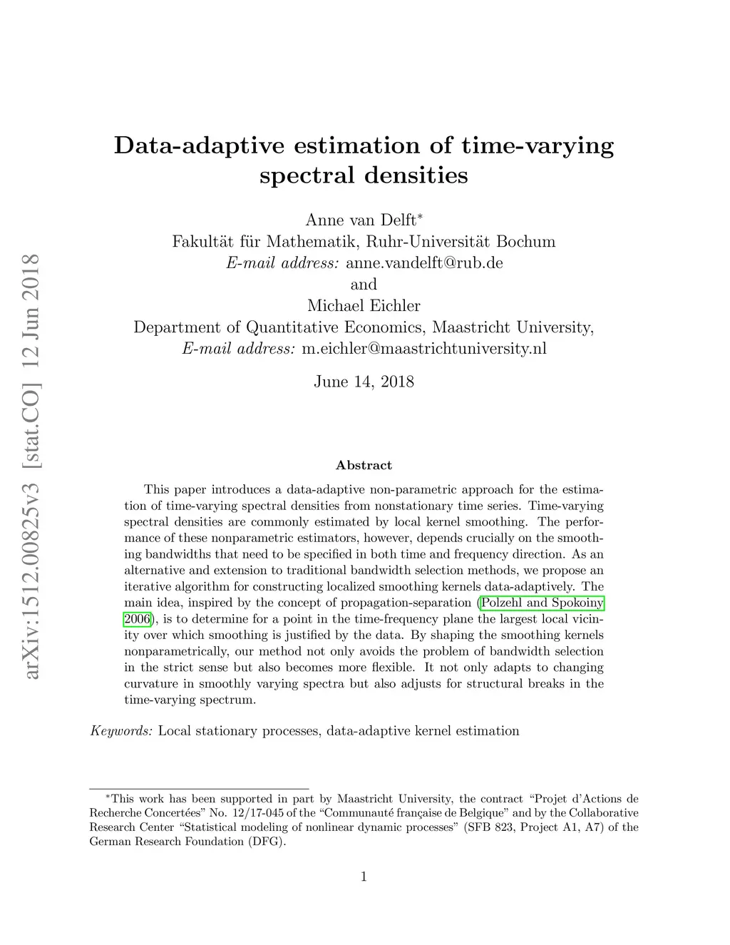 This paper introduces a data-adaptive non-parametric approach for the estimation of time-varying spectral densities from nonstationary time series. Time-varying spectral densities are commonly estimated by local kernel smoothing. The performance of these nonparametric estimators, however, depends crucially on the smoothing bandwidths that need to be specified in both time and frequency direction. As an alternative and extension to traditional bandwidth selection methods, we propose an iterative algorithm for constructing localized smoothing kernels data-adaptively. The main idea, inspired by the concept of propagation-separation (Polzehl and Spokoiny 2006), is to determine for a point in the time-frequency plane the largest local vicinity over which smoothing is justified by the data. By shaping the smoothing kernels nonparametrically, our method not only avoids the problem of bandwidth selection in the strict sense but also becomes more flexible. It not only adapts to changing curvature in smoothly varying spectra but also adjusts for structural breaks in the time-varying spectrum.