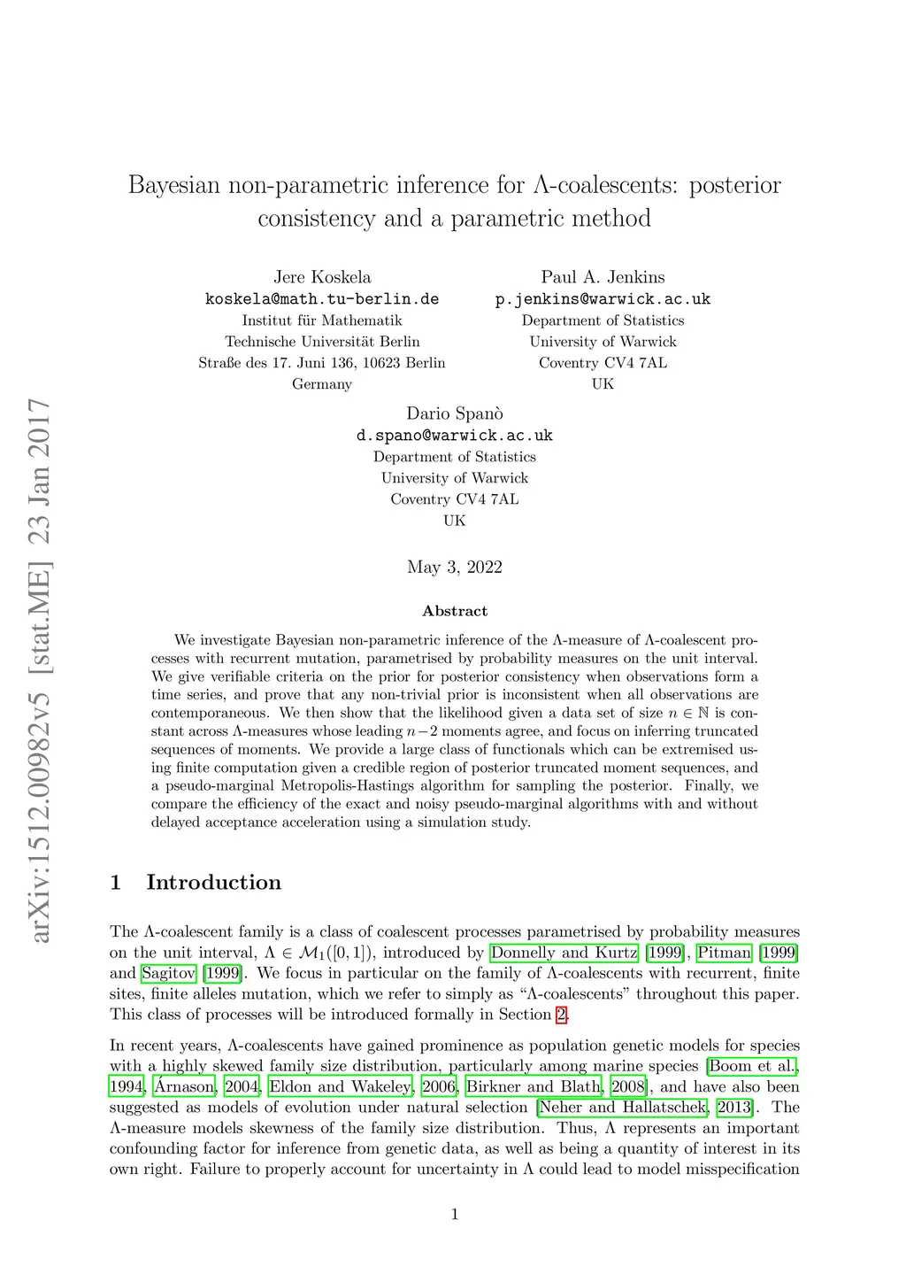 We investigate Bayesian non-parametric inference for -coalescent processes parametrised by probability measures on the unit interval, and provide an implementable, provably consistent MCMC inference algorithm. We give verifiable criteria on the prior for posterior consistency when observations form a time series, and prove that any non-trivial prior is inconsistent when all observations are contemporaneous. We then show that the likelihood given a data set of size is constant across -measures whose leading moments agree, and focus on inferring truncated sequences of moments. We provide a large class of functionals which can be extremised using finite computation given a credibility region of posterior truncated moment sequences, and a pseudo-marginal Metropolis-Hastings algorithm for sampling the posterior. Finally, we compare the efficiency of the exact and noisy pseudo-marginal algorithms with and without delayed acceptance acceleration using a simulation study.
