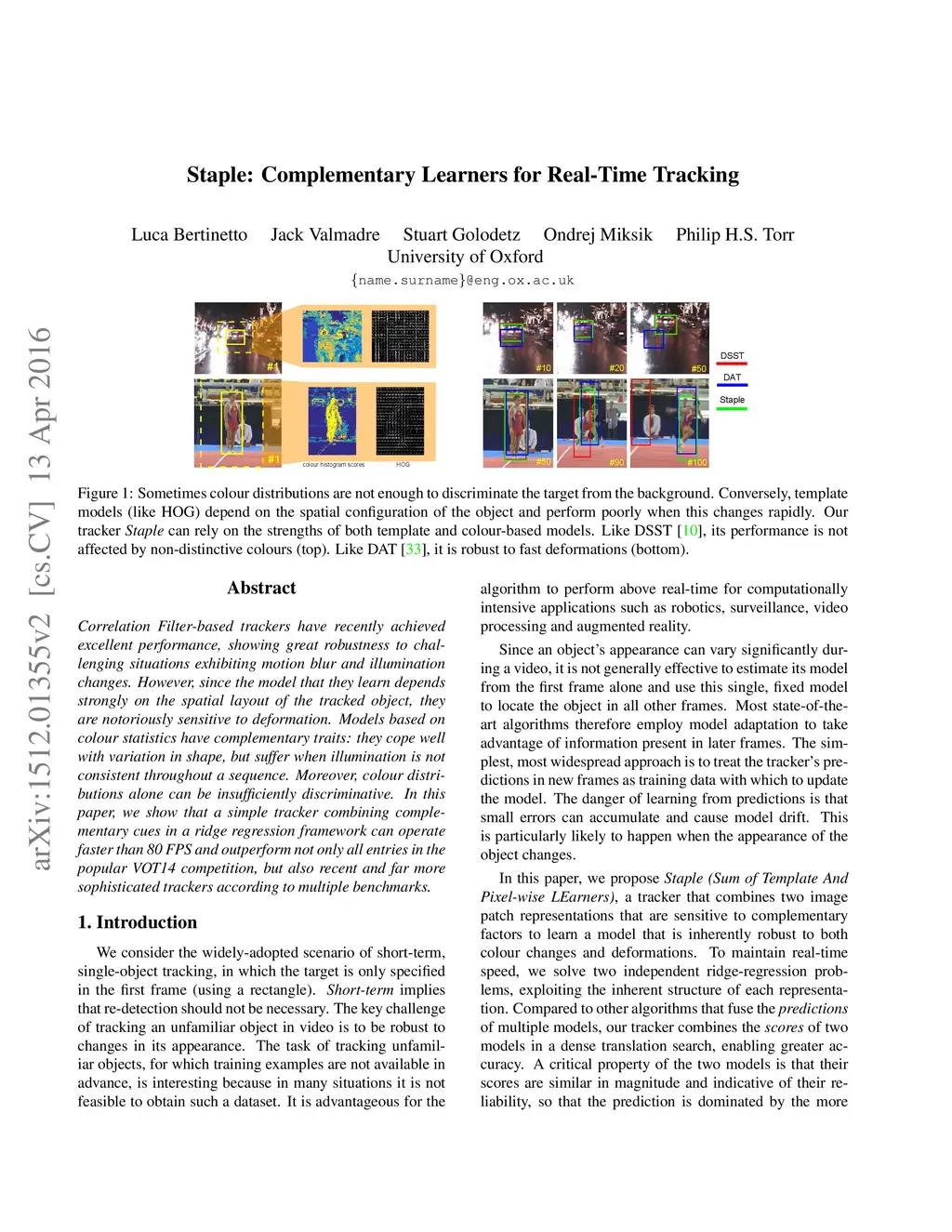 Staple: Complementary Learners for Real-Time Tracking