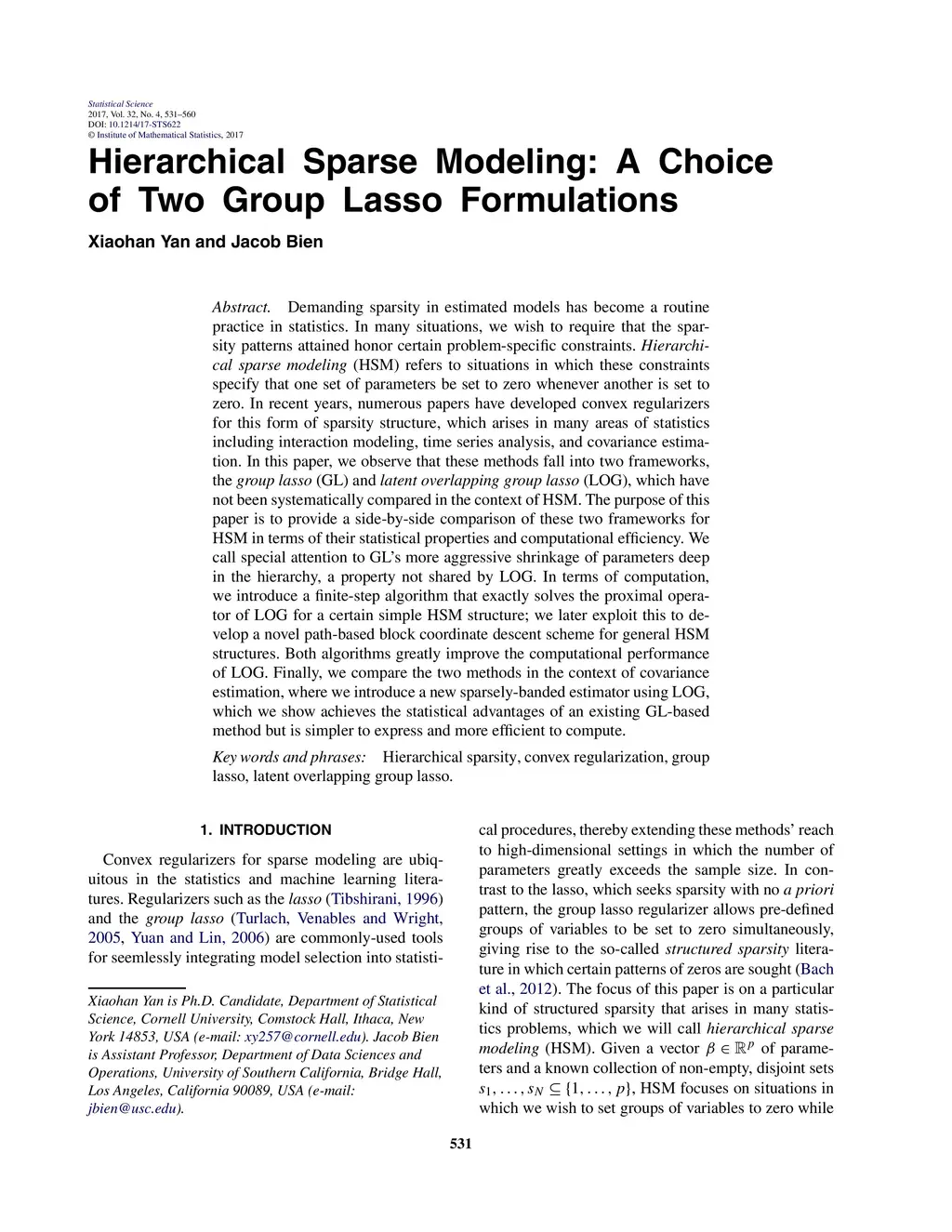Demanding sparsity in estimated models has become a routine practice in statistics. In many situations, we wish to require that the sparsity patterns attained honor certain problem-specific constraints. Hierarchical sparse modeling (HSM) refers to situations in which these constraints specify that one set of parameters be set to zero whenever another is set to zero. In recent years, numerous papers have developed convex regularizers for this form of sparsity structure, which arises in many areas of statistics including interaction modeling, time series analysis, and covariance estimation. In this paper, we observe that these methods fall into two frameworks, the group lasso (GL) and latent overlapping group lasso (LOG), which have not been systematically compared in the context of HSM. The purpose of this paper is to provide a side-by-side comparison of these two frameworks for HSM in terms of their statistical properties and computational efficiency. We call special attention to GL's more aggressive shrinkage of parameters deep in the hierarchy, a property not shared by LOG. In terms of computation, we introduce a finite-step algorithm that exactly solves the proximal operator of LOG for a certain simple HSM structure; we later exploit this to develop a novel path-based block coordinate descent scheme for general HSM structures. Both algorithms greatly improve the computational performance of LOG. Finally, we compare the two methods in the context of covariance estimation, where we introduce a new sparsely-banded estimator using LOG, which we show achieves the statistical advantages of an existing GL-based method but is simpler to express and more efficient to compute.