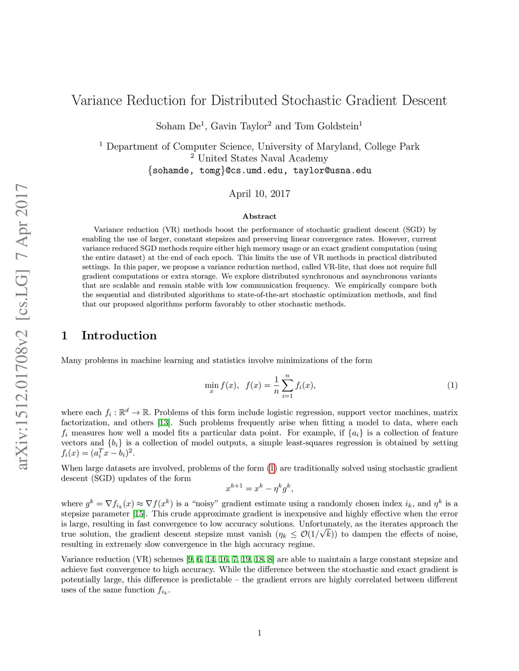 Variance Reduction for Distributed Stochastic Gradient Descent