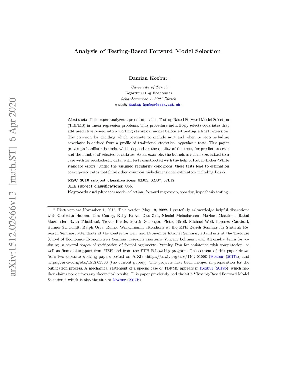 Analysis of Testing-Based Forward Model Selection