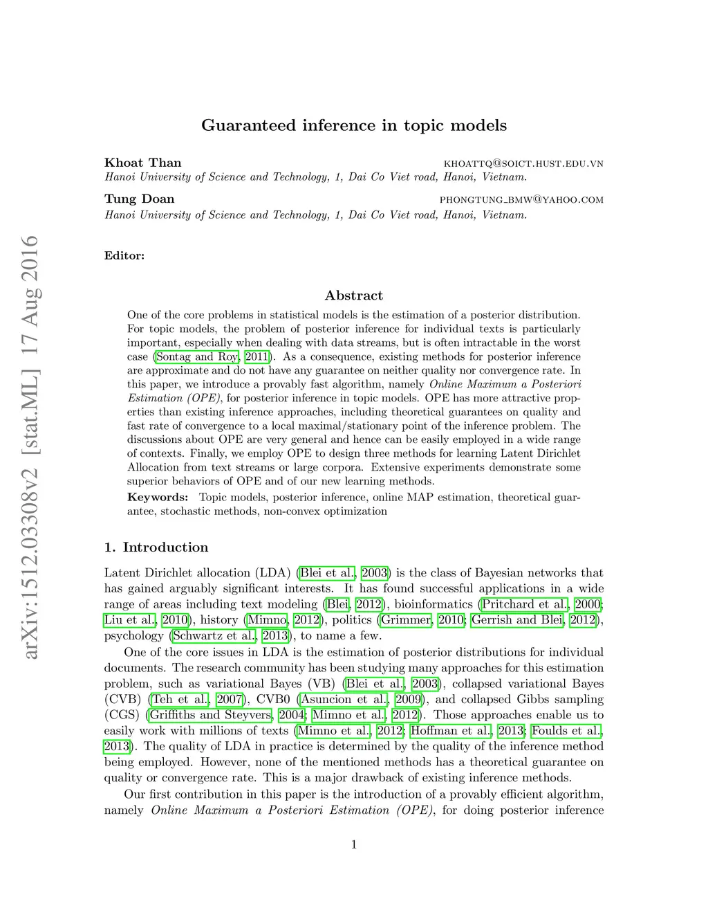 Guaranteed inference in topic models