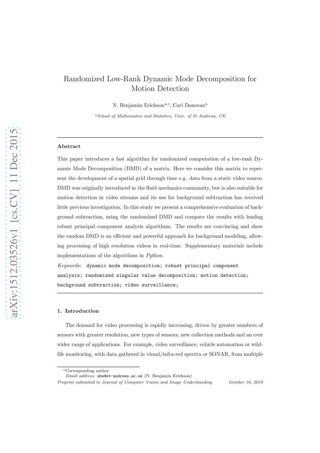 Randomized Low-Rank Dynamic Mode Decomposition for Motion Detection