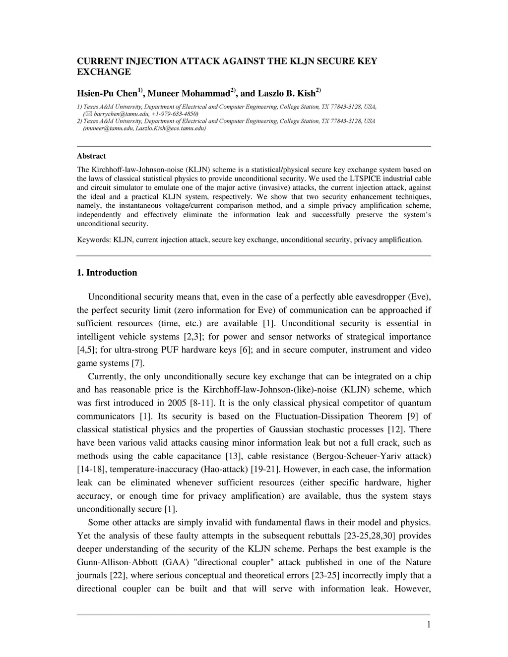 The Kirchhoff-law-Johnson-noise (KLJN) scheme is a statistical/physical secure key exchange system based on the laws of classical statistical physics to provide unconditional security. We used the LTSPICE industrial cable and circuit simulator to emulate one of the major active (invasive) attacks, the current injection attack, against the ideal and a practical KLJN system, respectively. We show that two security enhancement techniques, namely, the instantaneous voltage/current comparison method, and a simple privacy amplification scheme, independently and effectively eliminate the information leak and successfully preserve the system's unconditional security.