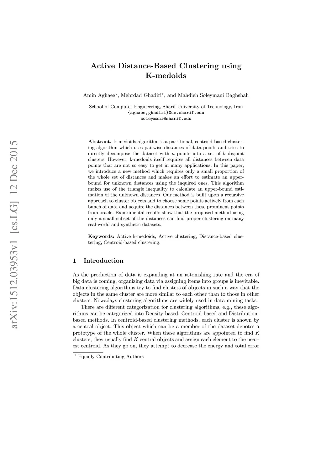 k-medoids algorithm is a partitional, centroid-based clustering algorithm which uses pairwise distances of data points and tries to directly decompose the dataset with points into a set of disjoint clusters. However, k-medoids itself requires all distances between data points that are not so easy to get in many applications. In this paper, we introduce a new method which requires only a small proportion of the whole set of distances and makes an effort to estimate an upper-bound for unknown distances using the inquired ones. This algorithm makes use of the triangle inequality to calculate an upper-bound estimation of the unknown distances. Our method is built upon a recursive approach to cluster objects and to choose some points actively from each bunch of data and acquire the distances between these prominent points from oracle. Experimental results show that the proposed method using only a small subset of the distances can find proper clustering on many real-world and synthetic datasets.