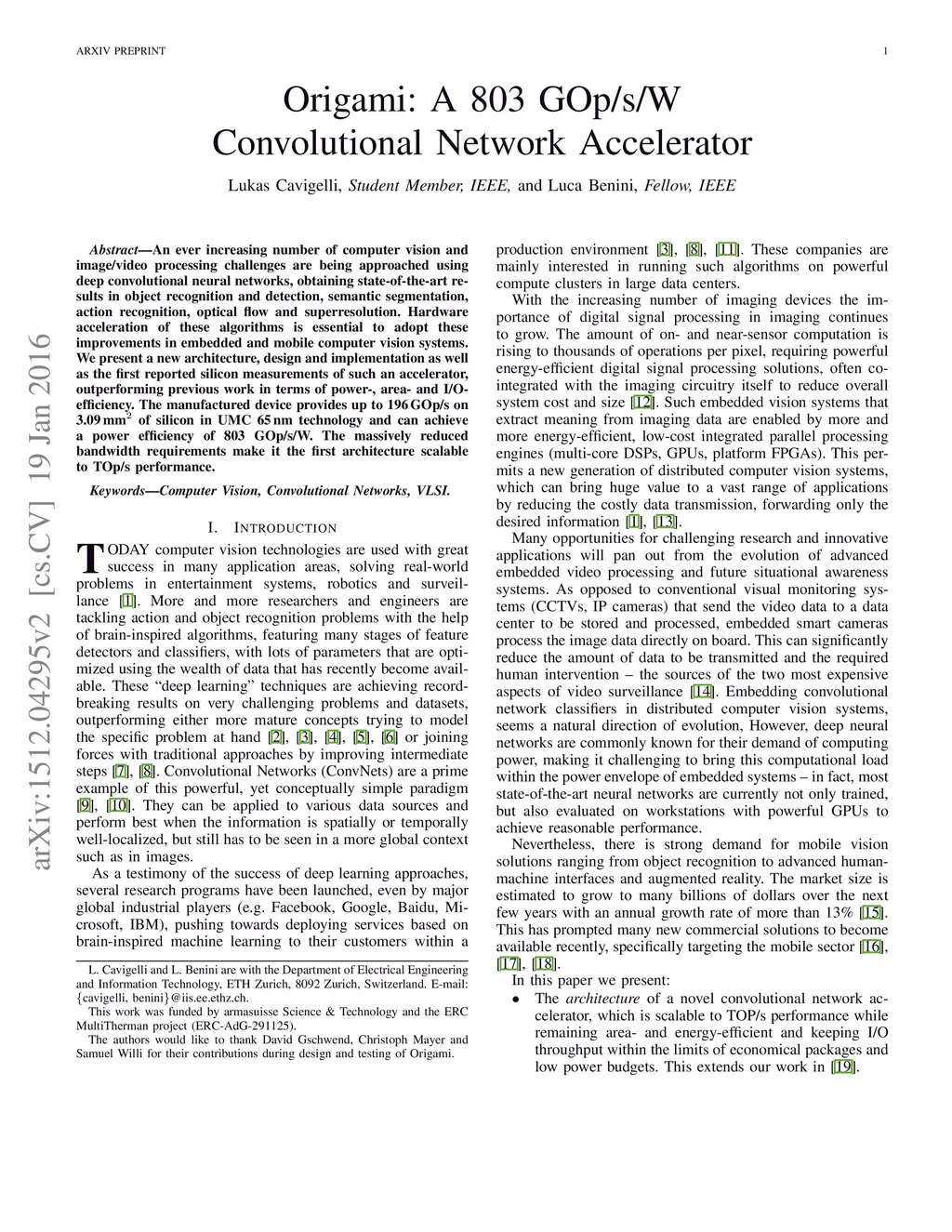 Origami: A 803 GOp/s/W Convolutional Network Accelerator