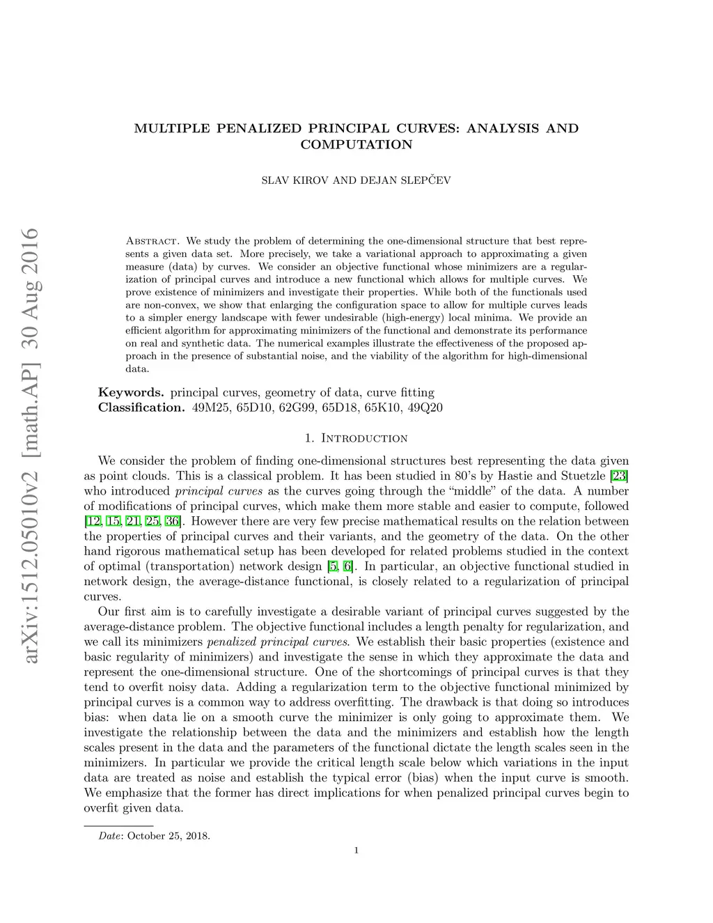 We study the problem of finding the one-dimensional structure in a given data set. In other words we consider ways to approximate a given measure (data) by curves. We consider an objective functional whose minimizers are a regularization of principal curves and introduce a new functional which allows for multiple curves. We prove the existence of minimizers and establish their basic properties. We develop an efficient algorithm for obtaining (near) minimizers of the functional. While both of the functionals used are nonconvex, we argue that enlarging the configuration space to allow for multiple curves leads to a simpler energy landscape with fewer undesirable (high-energy) local minima. Furthermore we note that the approach proposed is able to find the one-dimensional structure even for data with considerable amount of noise.