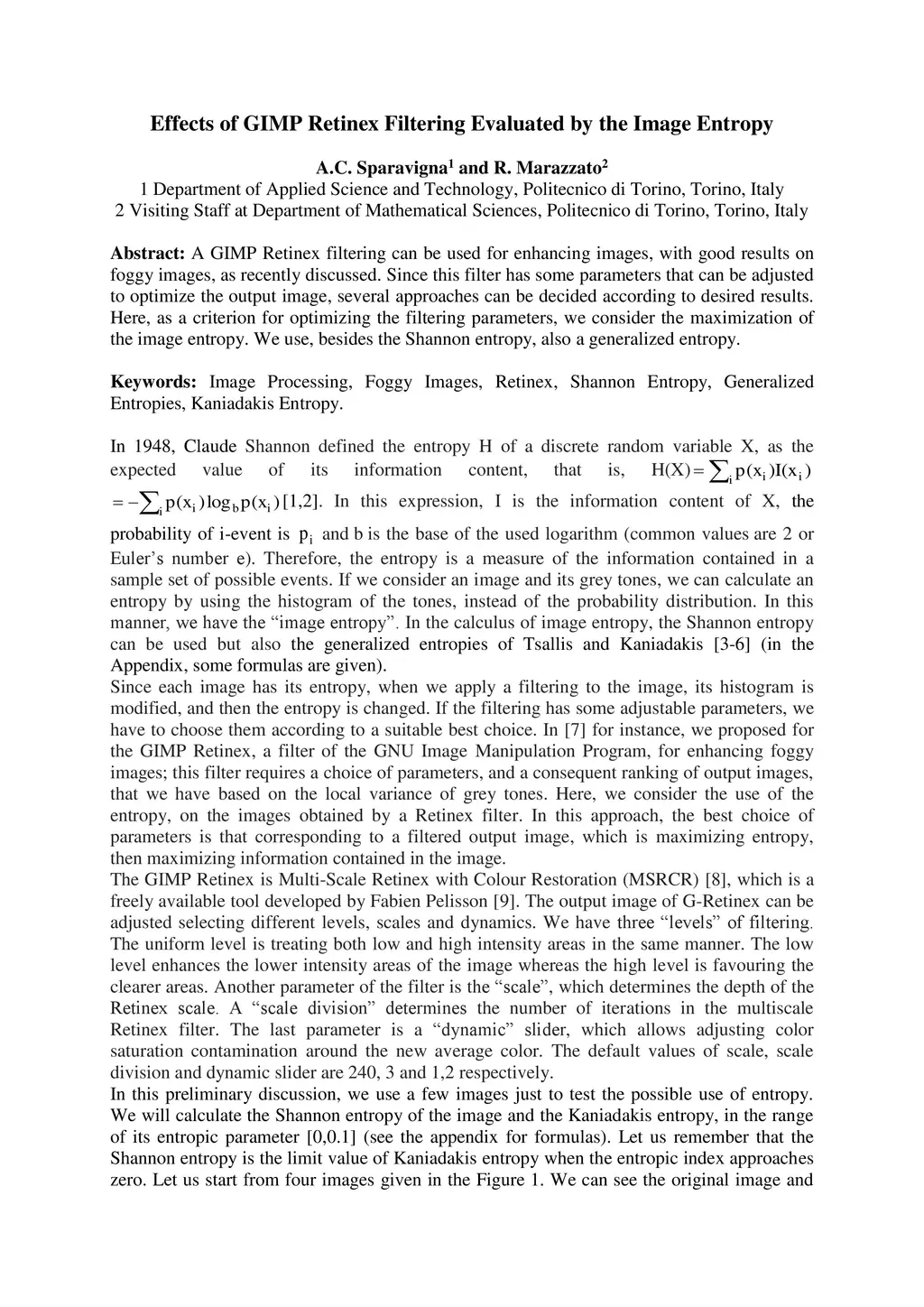 Effects of GIMP Retinex Filtering Evaluated by the Image Entropy