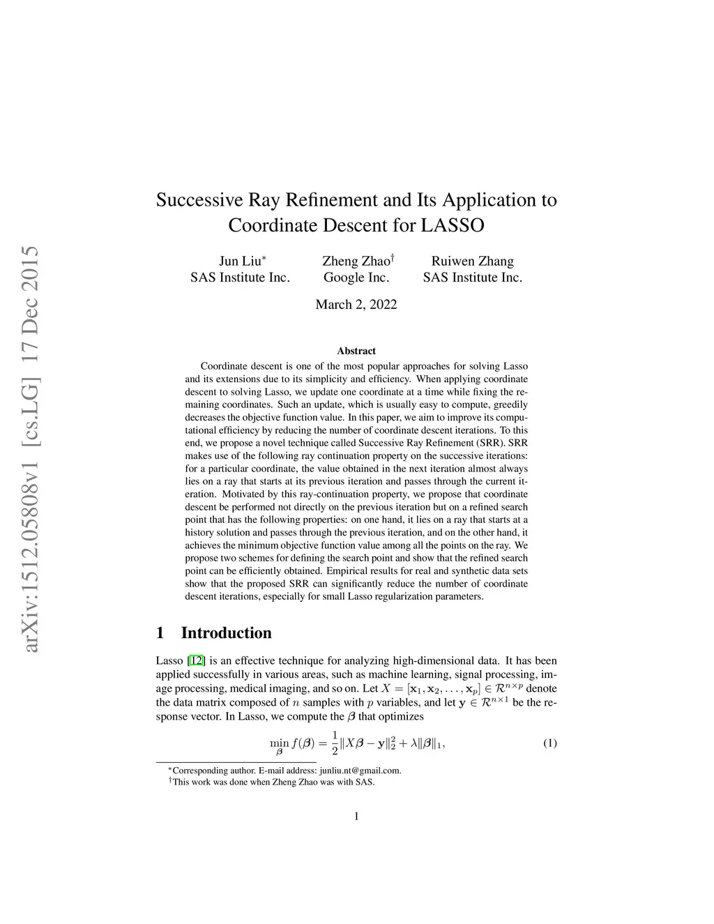 Successive Ray Refinement and Its Application to Coordinate Descent for