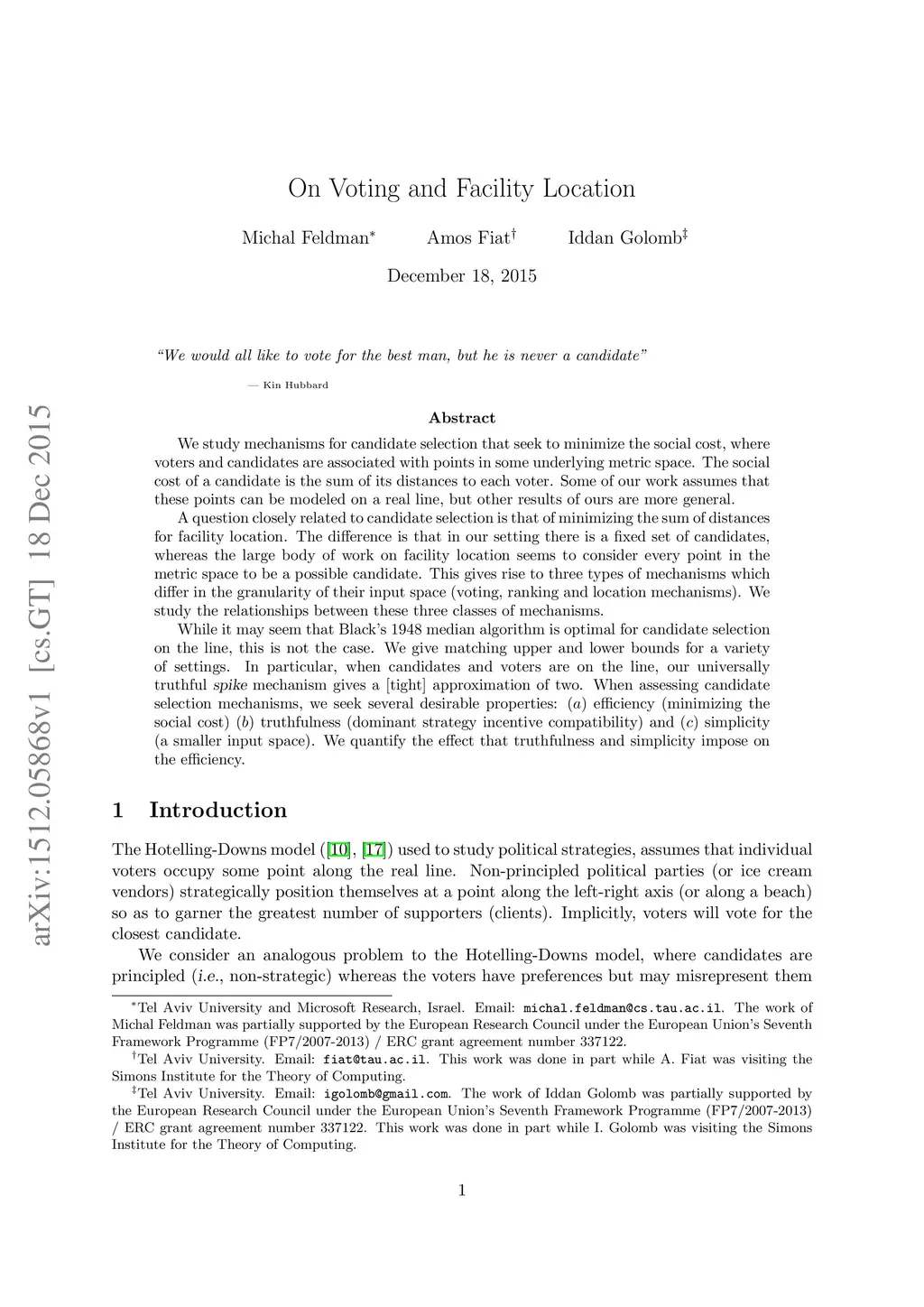 On Voting and Facility Location