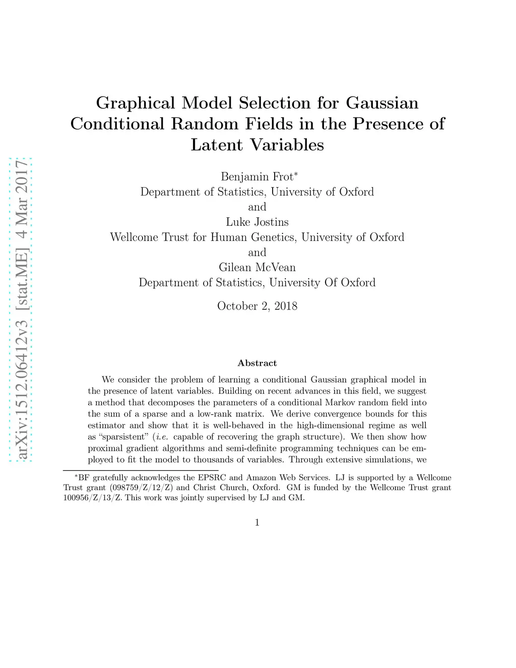 Latent variable model selection for Gaussian conditional random fields
