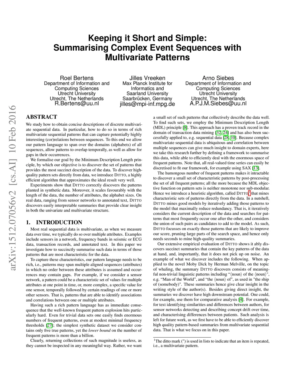 Keeping it Short and Simple: Summarising Complex Event Sequences with