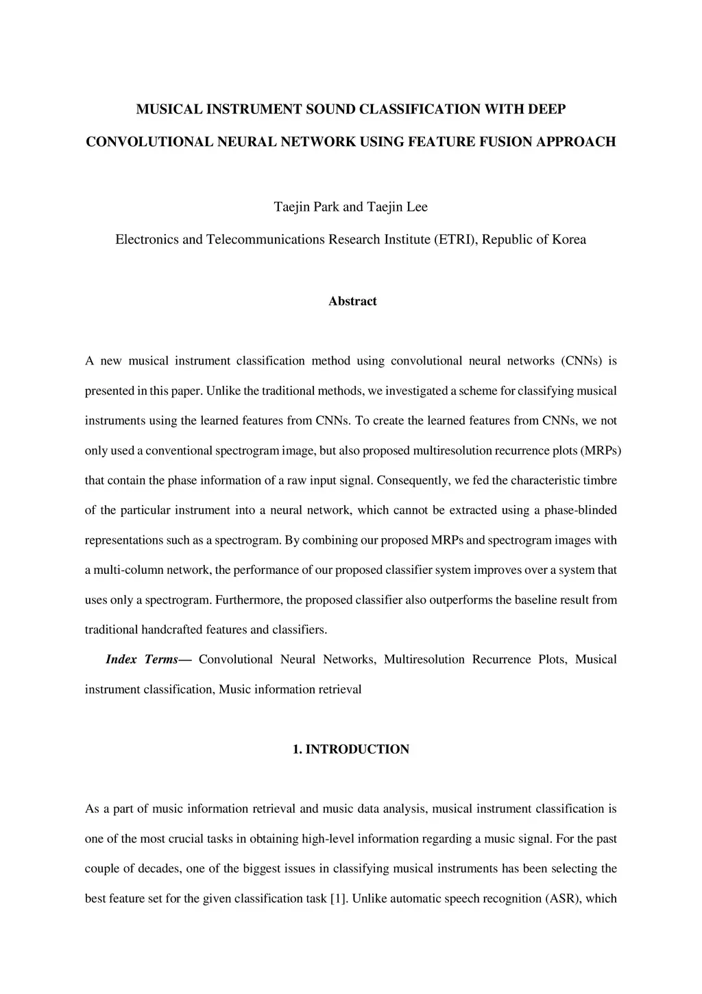 A new musical instrument classification method using convolutional neural networks (CNNs) is presented in this paper. Unlike the traditional methods, we investigated a scheme for classifying musical instruments using the learned features from CNNs. To create the learned features from CNNs, we not only used a conventional spectrogram image, but also proposed multiresolution recurrence plots (MRPs) that contain the phase information of a raw input signal. Consequently, we fed the characteristic timbre of the particular instrument into a neural network, which cannot be extracted using a phase-blinded representations such as a spectrogram. By combining our proposed MRPs and spectrogram images with a multi-column network, the performance of our proposed classifier system improves over a system that uses only a spectrogram. Furthermore, the proposed classifier also outperforms the baseline result from traditional handcrafted features and classifiers.