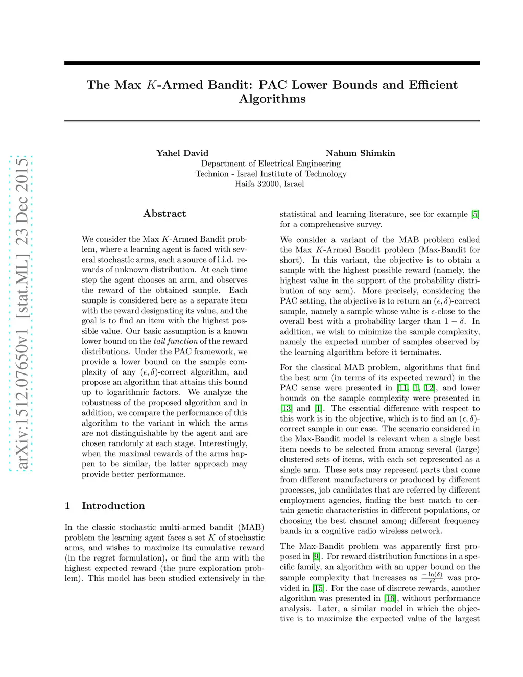 The Max -Armed Bandit: PAC Lower Bounds and Efficient Algorithms