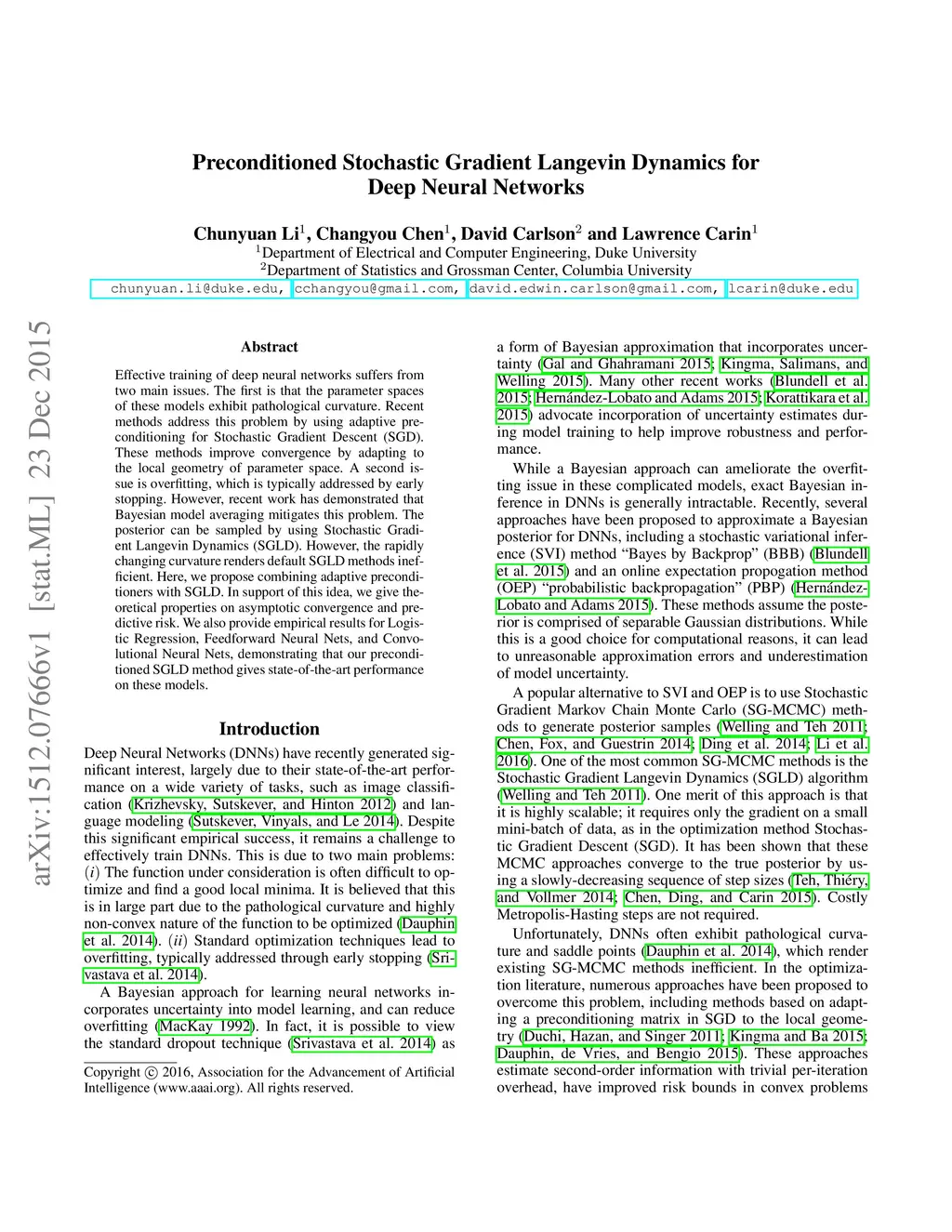 Preconditioned Stochastic Gradient Langevin Dynamics for Deep Neural