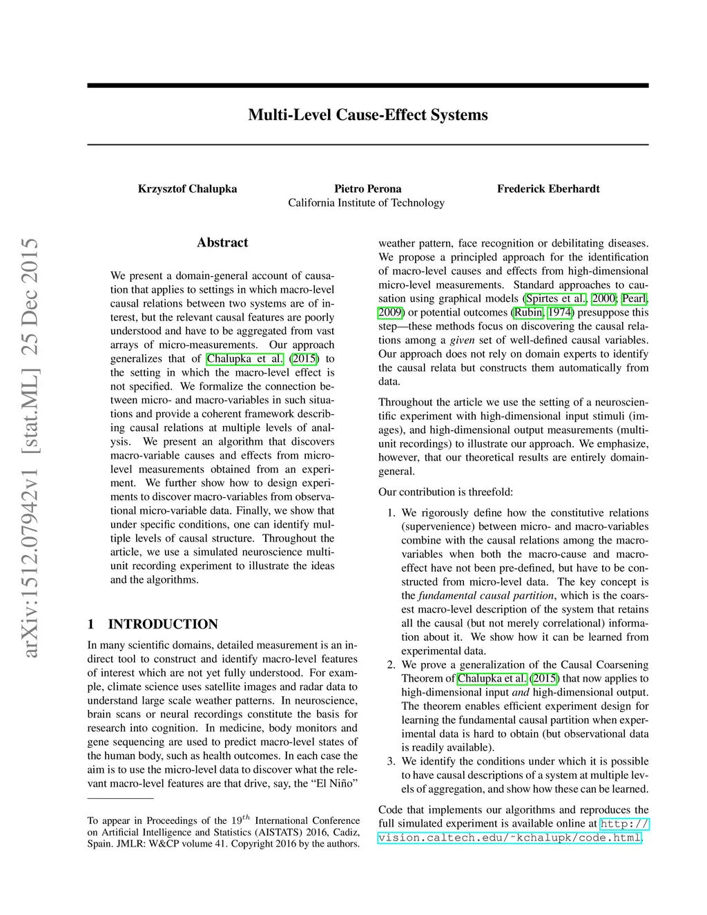 We present a domain-general account of causation that applies to settings in which macro-level causal relations between two systems are of interest, but the relevant causal features are poorly understood and have to be aggregated from vast arrays of micro-measurements. Our approach generalizes that of Chalupka et al. (2015) to the setting in which the macro-level effect is not specified. We formalize the connection between micro- and macro-variables in such situations and provide a coherent framework describing causal relations at multiple levels of analysis. We present an algorithm that discovers macro-variable causes and effects from micro-level measurements obtained from an experiment. We further show how to design experiments to discover macro-variables from observational micro-variable data. Finally, we show that under specific conditions, one can identify multiple levels of causal structure. Throughout the article, we use a simulated neuroscience multi-unit recording experiment to illustrate the ideas and the algorithms.