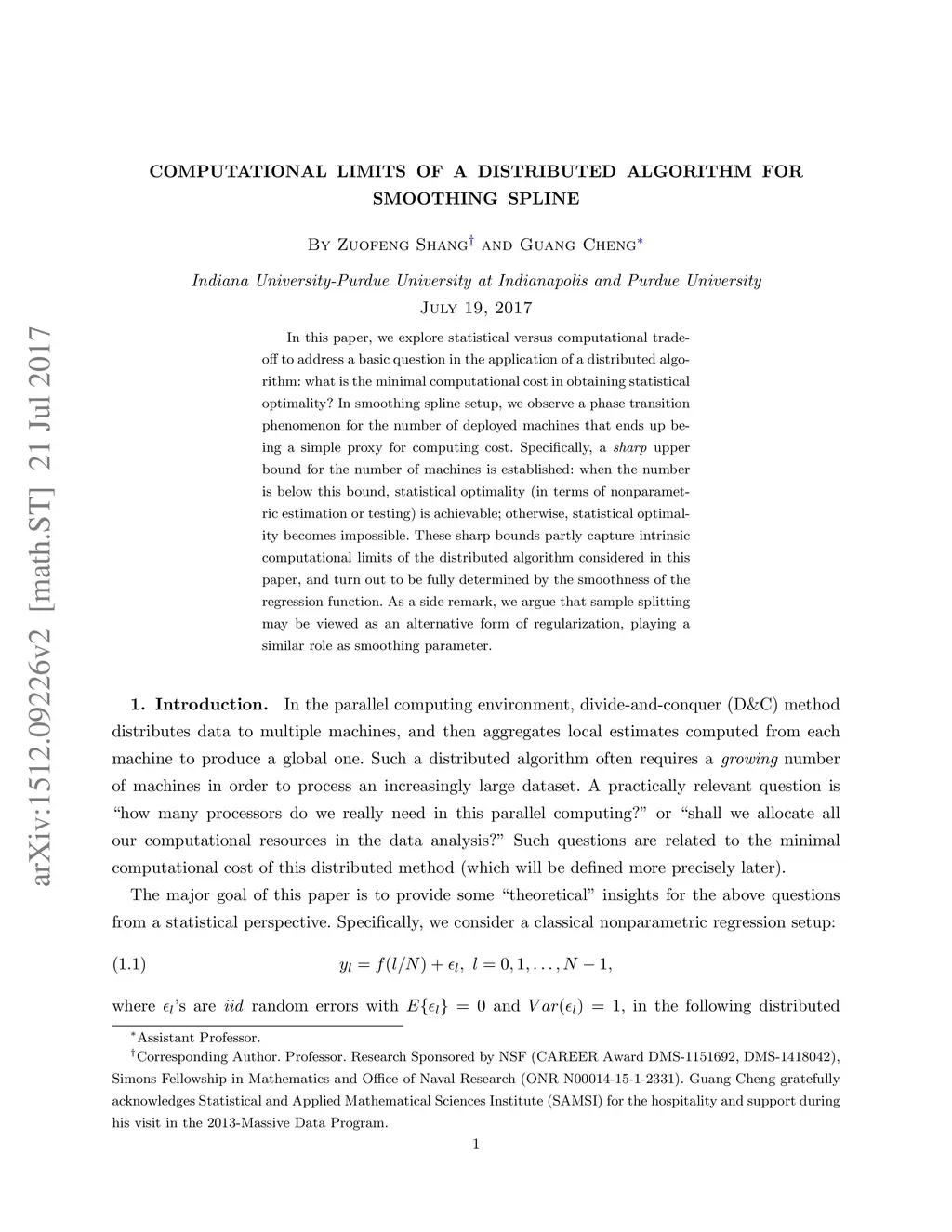This theoretical note explores statistical versus computational trade-off to address a basic question in the application of divide-and-conquer method: what is the minimal computational cost in obtaining statistical optimality? In smoothing spline setup, we observe a phase transition phenomenon for the number of deployed machines that ends up being a simple proxy for computing cost. Specifically, a sharp upper bound for the number of machines is established: when the number is below this bound, statistical optimality (in terms of nonparametric estimation or testing) is achievable; otherwise, statistical optimality becomes impossible. These sharp bounds capture intrinsic computational limits of divide-and-conquer method, which turn out to be fully determined by the smoothness of the regression function. As a side remark, we argue that sample spitting may be viewed as a new form of regularization, playing a similar role as smoothing parameter.