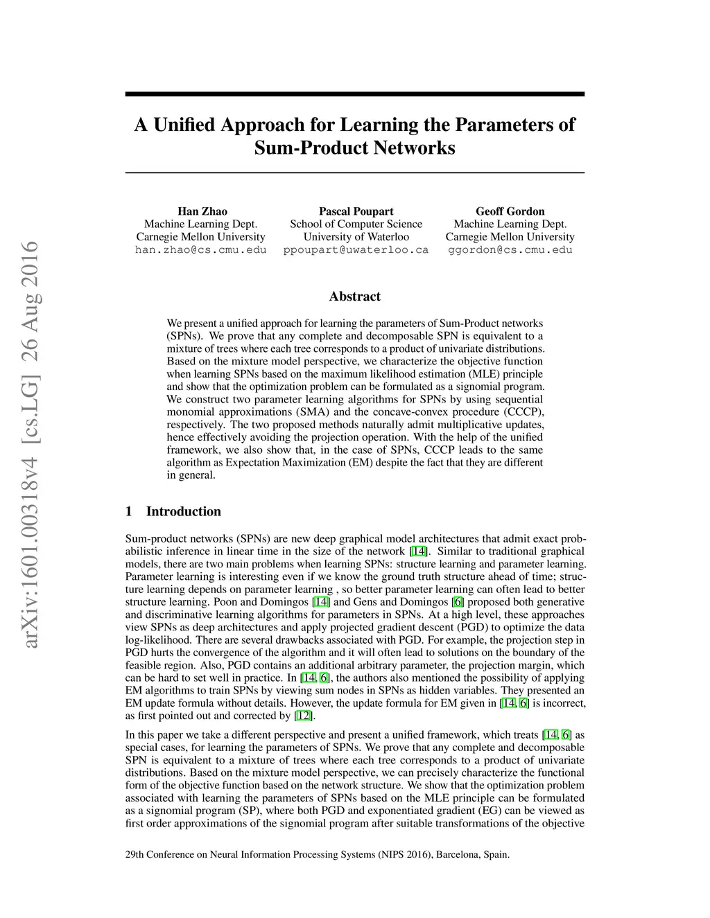 A Unified Approach for Learning the Parameters of Sum-Product Networks