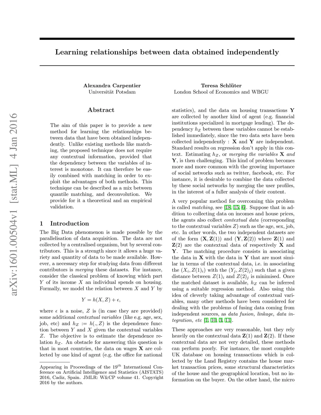 Learning relationships between data obtained independently
