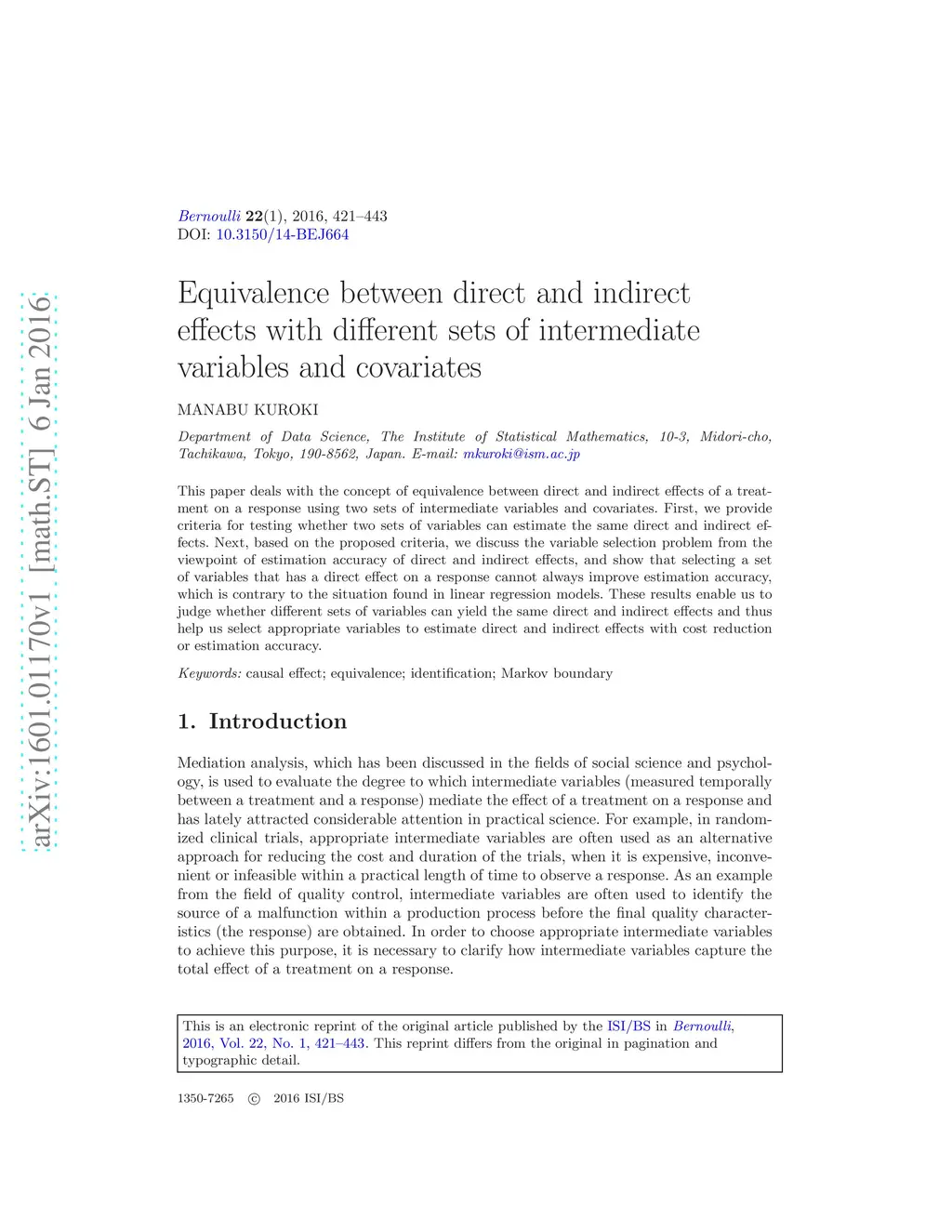 This paper deals with the concept of equivalence between direct and indirect effects of a treatment on a response using two sets of intermediate variables and covariates. First, we provide criteria for testing whether two sets of variables can estimate the same direct and indirect effects. Next, based on the proposed criteria, we discuss the variable selection problem from the viewpoint of estimation accuracy of direct and indirect effects, and show that selecting a set of variables that has a direct effect on a response cannot always improve estimation accuracy, which is contrary to the situation found in linear regression models. These results enable us to judge whether different sets of variables can yield the same direct and indirect effects and thus help us select appropriate variables to estimate direct and indirect effects with cost reduction or estimation accuracy.