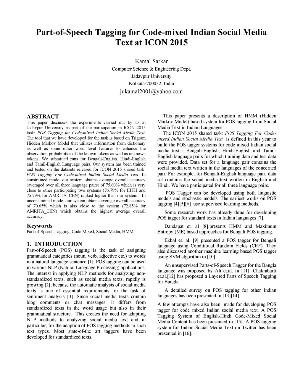 Part-of-Speech Tagging for Code-mixed Indian Social Media Text at ICON