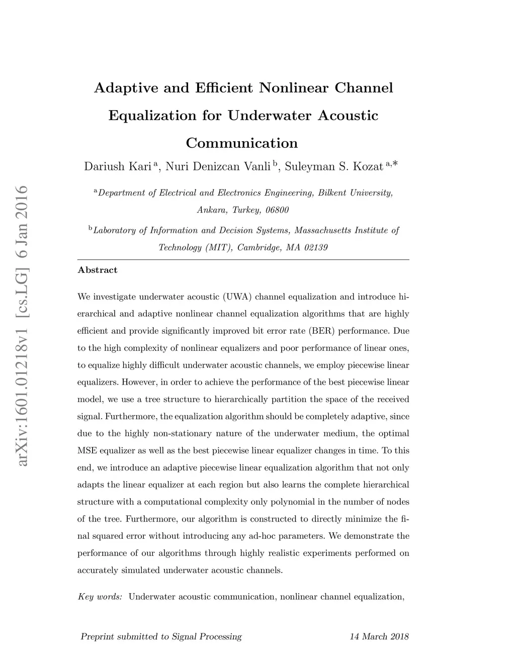 Adaptive and Efficient Nonlinear Channel Equalization for Underwater