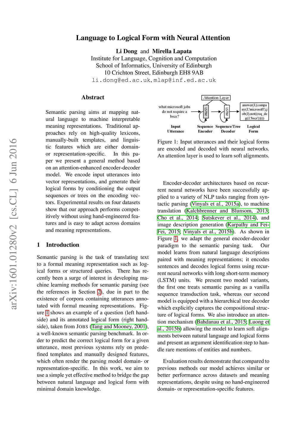 Language to Logical Form with Neural Attention