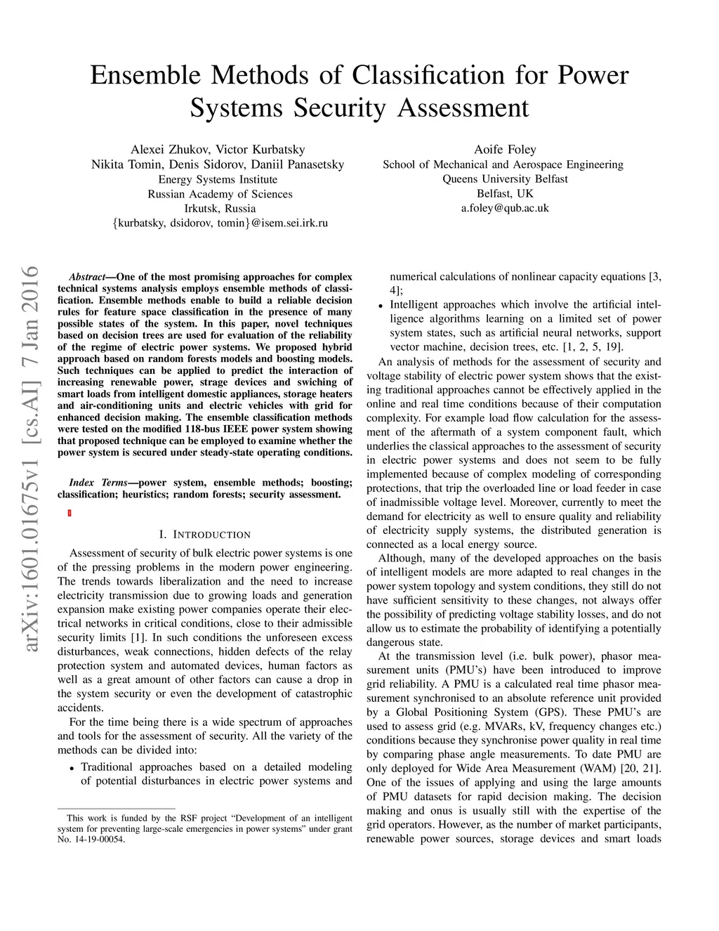 Ensemble Methods of Classification for Power Systems Security Assessment