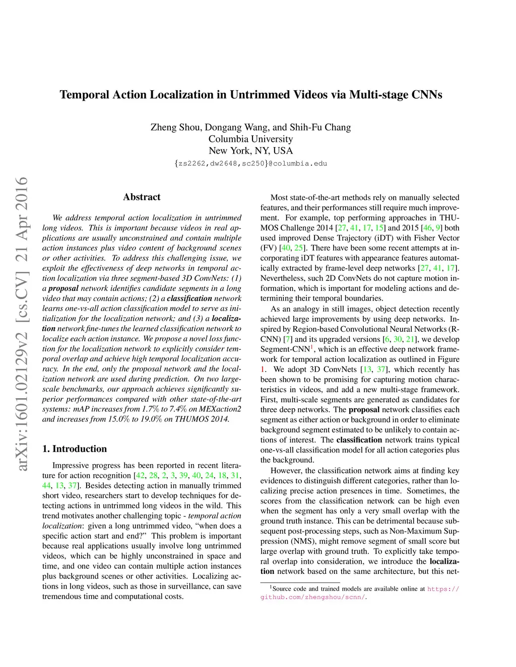 Temporal Action Localization in Untrimmed Videos via Multi-stage CNNs