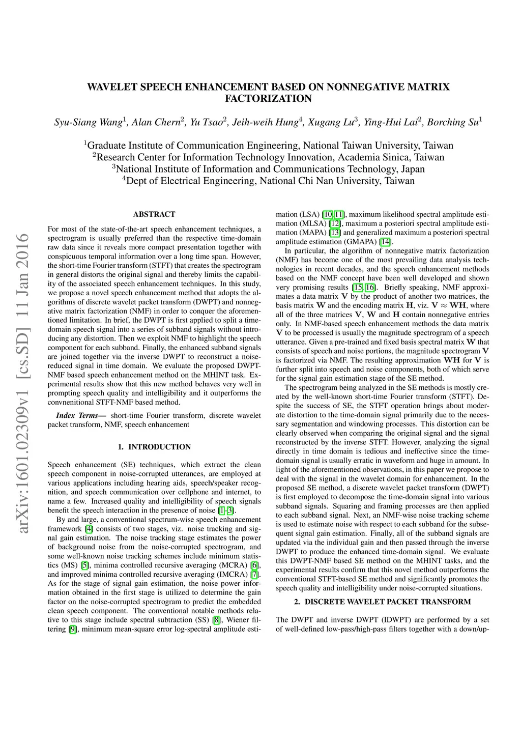 Wavelet speech enhancement based on nonnegative matrix factorization