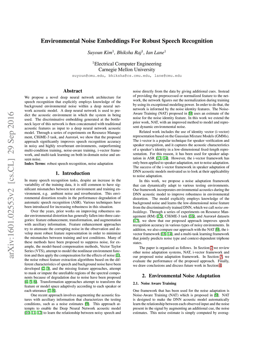 Environmental Noise Embeddings for Robust Speech Recognition