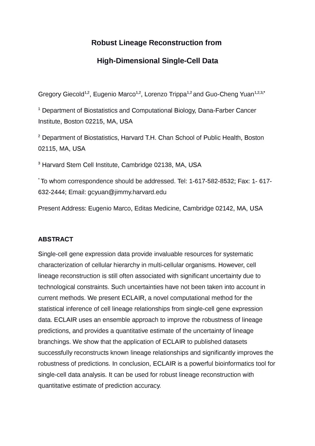 Single-cell gene expression data provide invaluable resources for systematic characterization of cellular hierarchy in multi-cellular organisms. However, cell lineage reconstruction is still often associated with significant uncertainty due to technological constraints. Such uncertainties have not been taken into account in current methods. We present ECLAIR, a novel computational method for the statistical inference of cell lineage relationships from single-cell gene expression data. ECLAIR uses an ensemble approach to improve the robustness of lineage predictions, and provides a quantitative estimate of the uncertainty of lineage branchings. We show that the application of ECLAIR to published datasets successfully reconstructs known lineage relationships and significantly improves the robustness of predictions. In conclusion, ECLAIR is a powerful bioinformatics tool for single-cell data analysis. It can be used for robust lineage reconstruction with quantitative estimate of prediction accuracy.