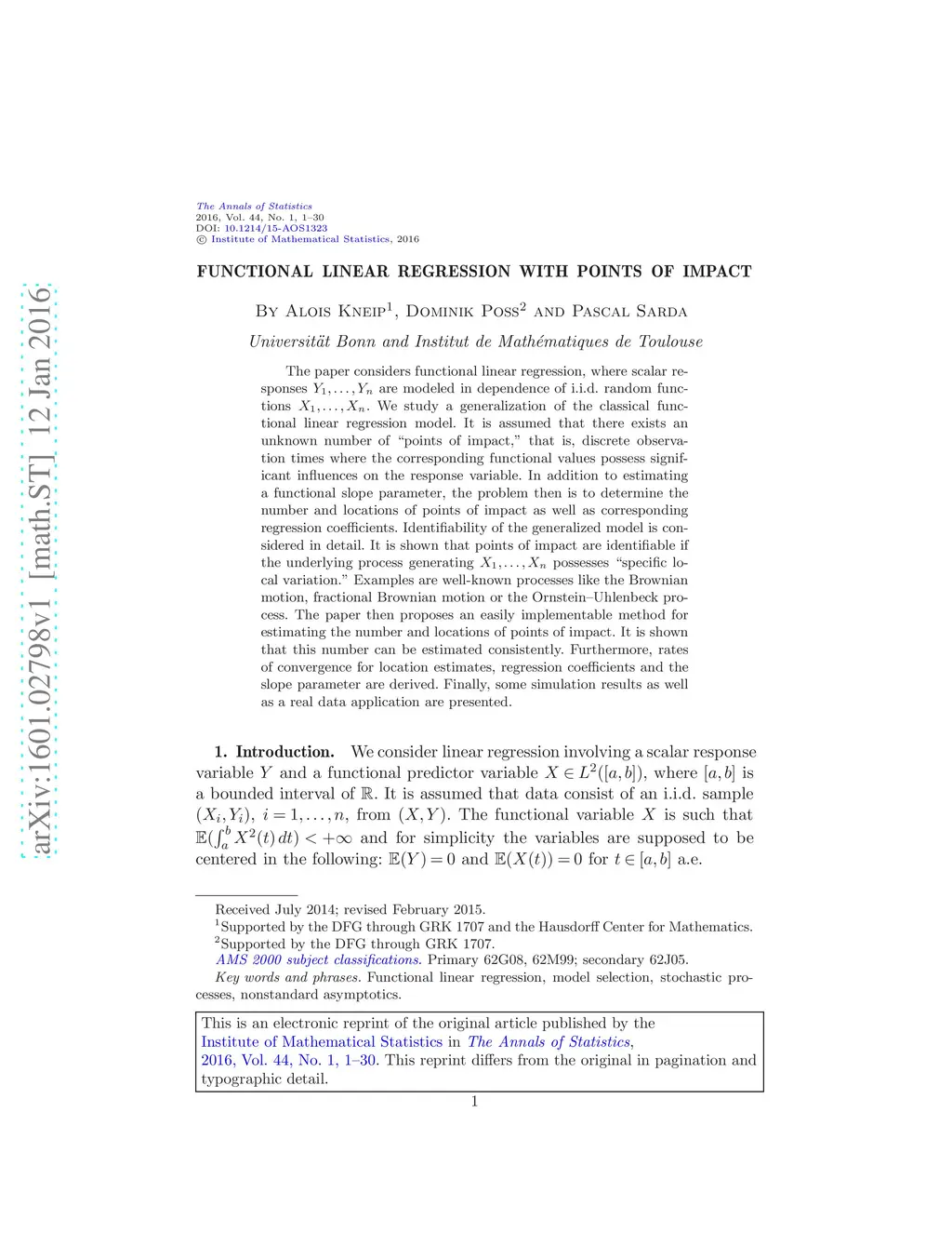 The paper considers functional linear regression, where scalar responses are modeled in dependence of i.i.d. random functions . We study a generalization of the classical functional linear regression model. It is assumed that there exists an unknown number of "points of impact," that is, discrete observation times where the corresponding functional values possess significant influences on the response variable. In addition to estimating a functional slope parameter, the problem then is to determine the number and locations of points of impact as well as corresponding regression coefficients. Identifiability of the generalized model is considered in detail. It is shown that points of impact are identifiable if the underlying process generating possesses "specific local variation." Examples are well-known processes like the Brownian motion, fractional Brownian motion or the Ornstein-Uhlenbeck process. The paper then proposes an easily implementable method for estimating the number and locations of points of impact. It is shown that this number can be estimated consistently. Furthermore, rates of convergence for location estimates, regression coefficients and the slope parameter are derived. Finally, some simulation results as well as a real data application are presented.