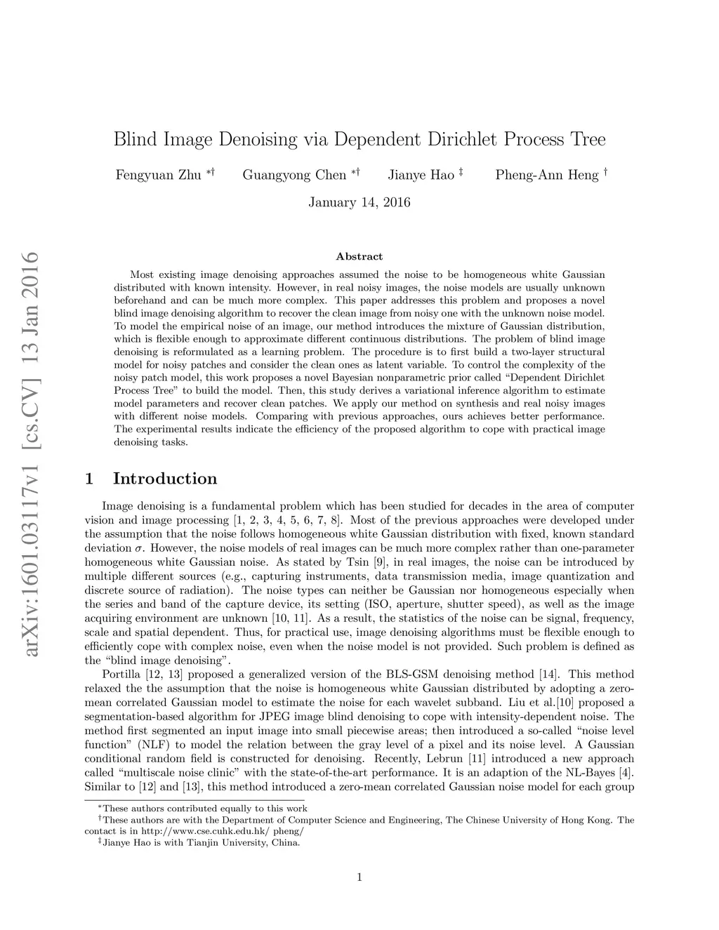 Blind Image Denoising via Dependent Dirichlet Process Tree