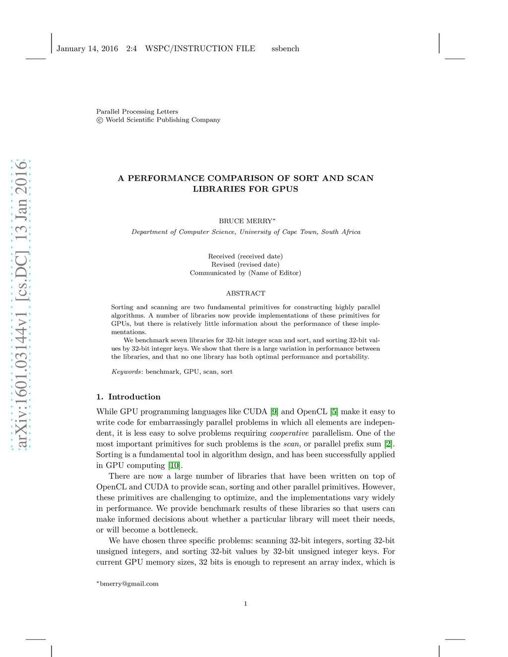 A Performance Comparison of Sort and Scan Libraries for GPUs