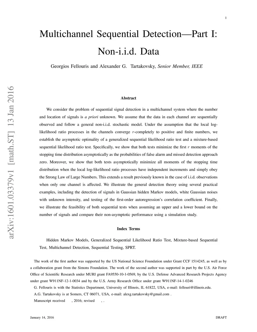 Multichannel Sequential Detection- Part I: Non-i.i.d. Data