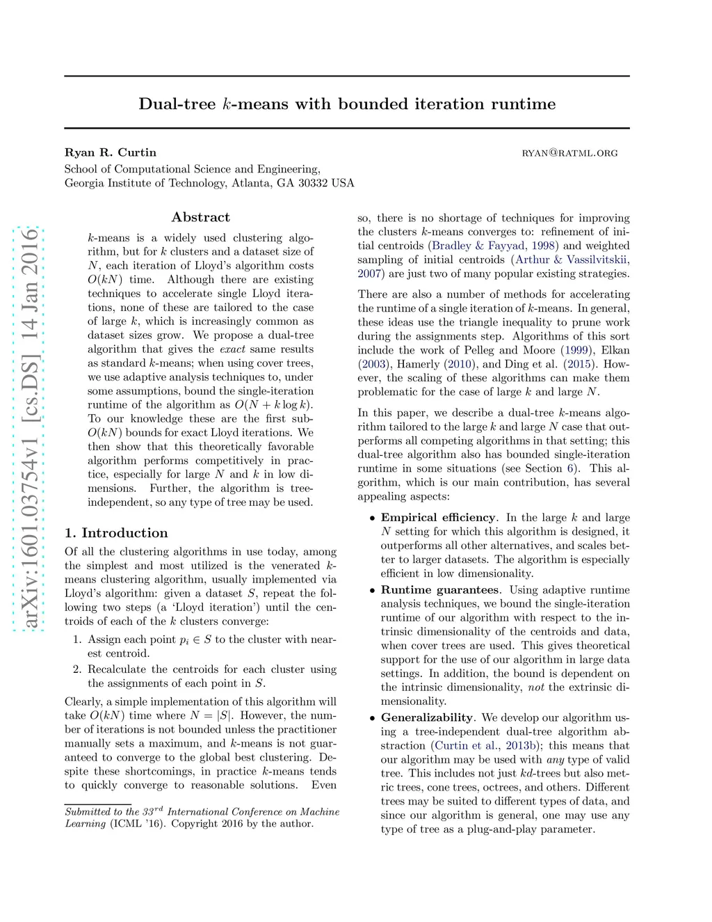 k-means is a widely used clustering algorithm, but for clusters and a dataset size of , each iteration of Lloyd's algorithm costs time. Although there are existing techniques to accelerate single Lloyd iterations, none of these are tailored to the case of large , which is increasingly common as dataset sizes grow. We propose a dual-tree algorithm that gives the exact same results as standard -means; when using cover trees, we use adaptive analysis techniques to, under some assumptions, bound the single-iteration runtime of the algorithm as . To our knowledge these are the first sub- bounds for exact Lloyd iterations. We then show that this theoretically favorable algorithm performs competitively in practice, especially for large and in low dimensions. Further, the algorithm is tree-independent, so any type of tree may be used.