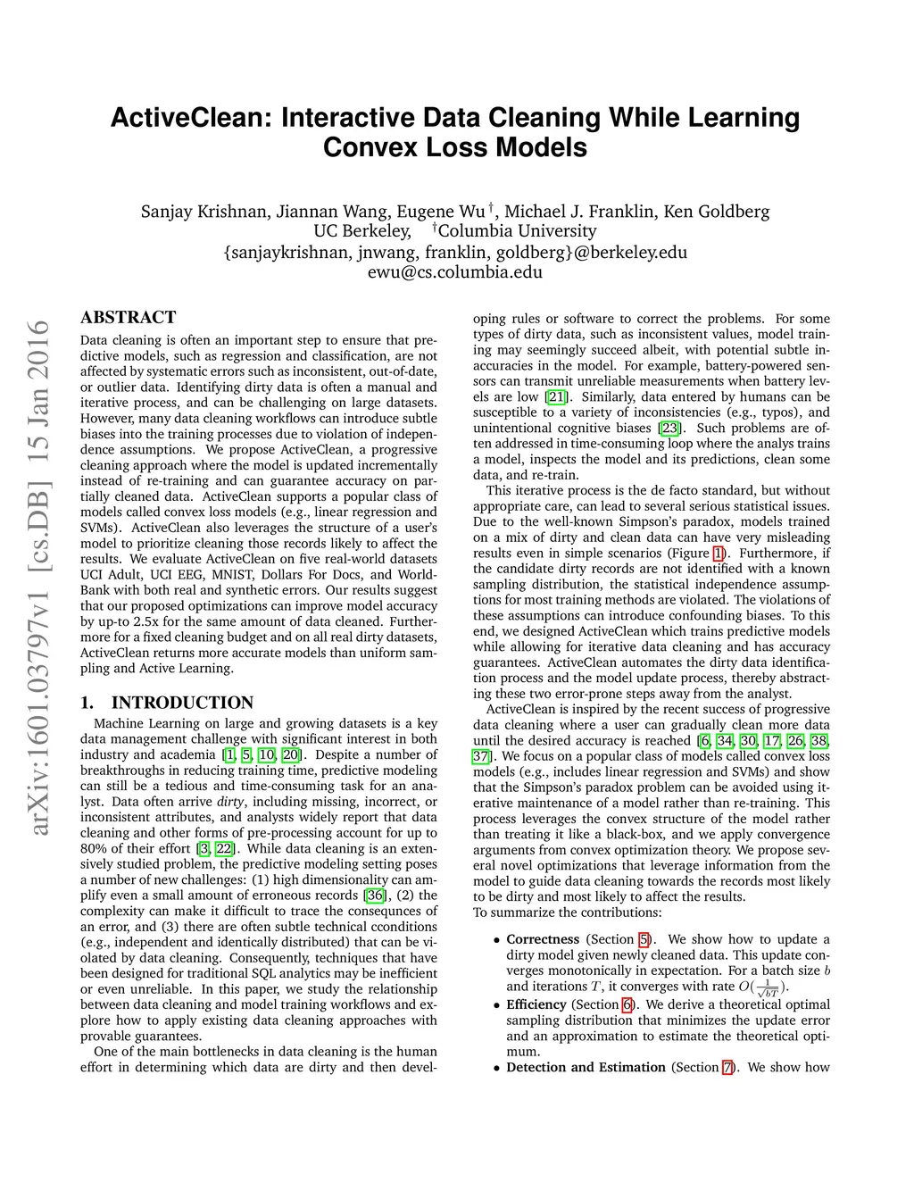 Data cleaning is often an important step to ensure that predictive models, such as regression and classification, are not affected by systematic errors such as inconsistent, out-of-date, or outlier data. Identifying dirty data is often a manual and iterative process, and can be challenging on large datasets. However, many data cleaning workflows can introduce subtle biases into the training processes due to violation of independence assumptions. We propose ActiveClean, a progressive cleaning approach where the model is updated incrementally instead of re-training and can guarantee accuracy on partially cleaned data. ActiveClean supports a popular class of models called convex loss models (e.g., linear regression and SVMs). ActiveClean also leverages the structure of a user's model to prioritize cleaning those records likely to affect the results. We evaluate ActiveClean on five real-world datasets UCI Adult, UCI EEG, MNIST, Dollars For Docs, and WorldBank with both real and synthetic errors. Our results suggest that our proposed optimizations can improve model accuracy by up-to 2.5x for the same amount of data cleaned. Furthermore for a fixed cleaning budget and on all real dirty datasets, ActiveClean returns more accurate models than uniform sampling and Active Learning.