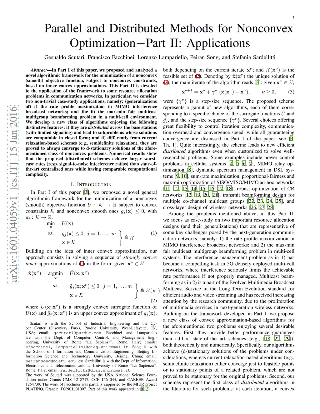 Parallel and Distributed Methods for Nonconvex Optimization--Part II: