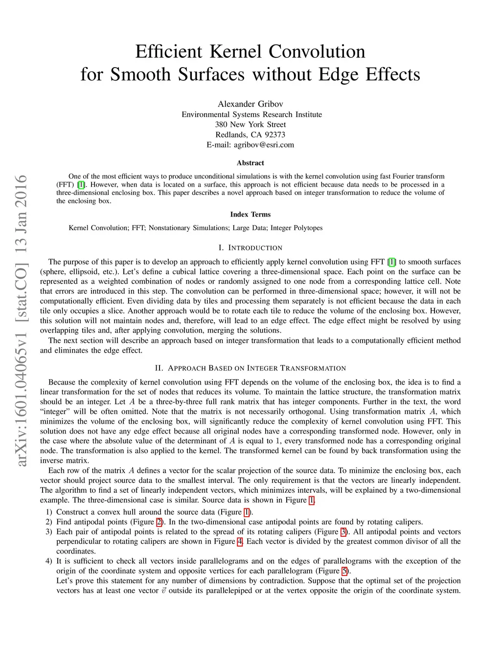 One of the most efficient ways to produce unconditional simulations is with the kernel convolution using fast Fourier transform (FFT) [1]. However, when data is located on a surface, this approach is not efficient because data needs to be processed in a three-dimensional enclosing box. This paper describes a novel approach based on integer transformation to reduce the volume of the enclosing box.