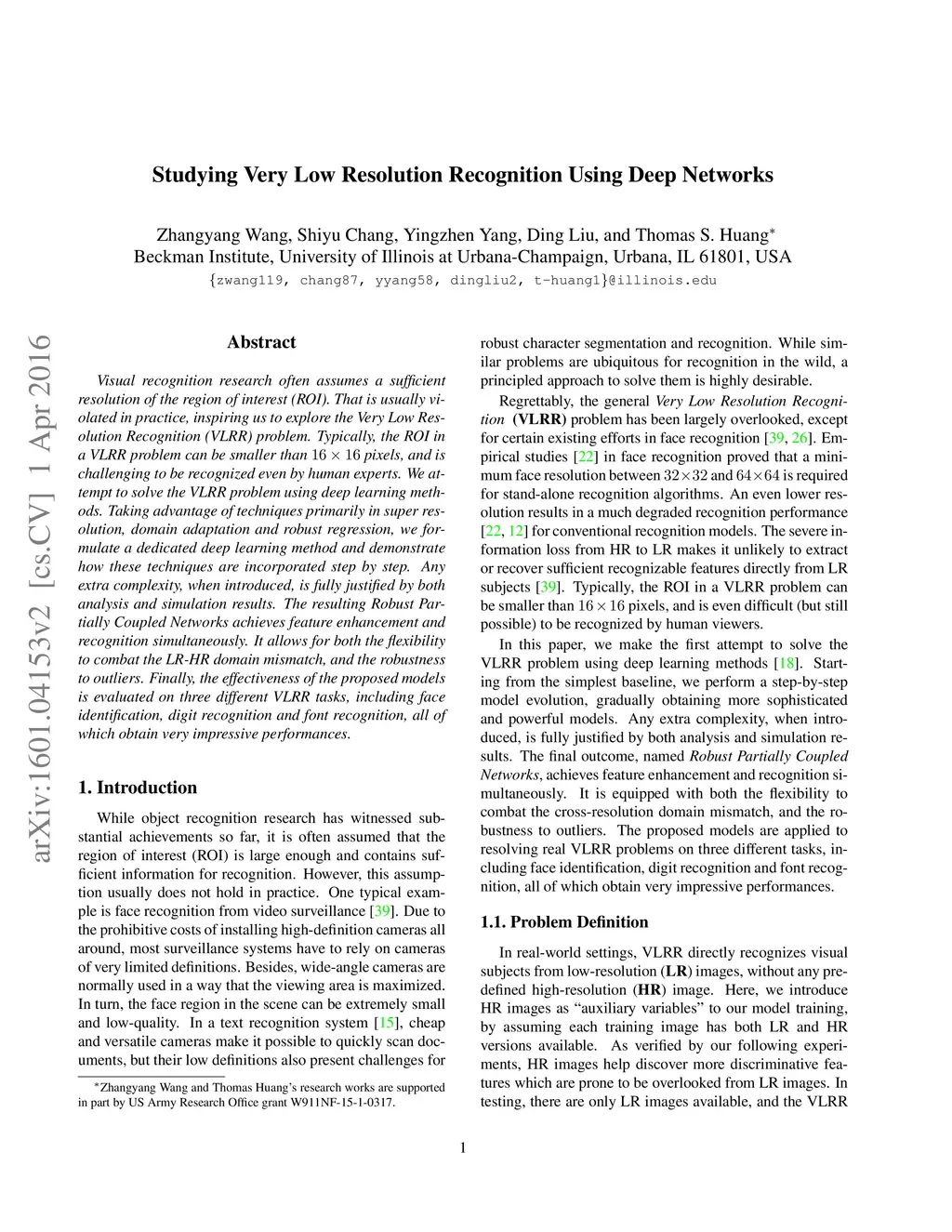 Visual recognition research often assumes a sufficient resolution of the region of interest (ROI). That is usually violated in practice, inspiring us to explore the Very Low Resolution Recognition (VLRR) problem. Typically, the ROI in a VLRR problem can be smaller than pixels, and is challenging to be recognized even by human experts. We attempt to solve the VLRR problem using deep learning methods. Taking advantage of techniques primarily in super resolution, domain adaptation and robust regression, we formulate a dedicated deep learning method and demonstrate how these techniques are incorporated step by step. Any extra complexity, when introduced, is fully justified by both analysis and simulation results. The resulting \textit{Robust Partially Coupled Networks} achieves feature enhancement and recognition simultaneously. It allows for both the flexibility to combat the LR-HR domain mismatch, and the robustness to outliers. Finally, the effectiveness of the proposed models is evaluated on three different VLRR tasks, including face identification, digit recognition and font recognition, all of which obtain very impressive performances.