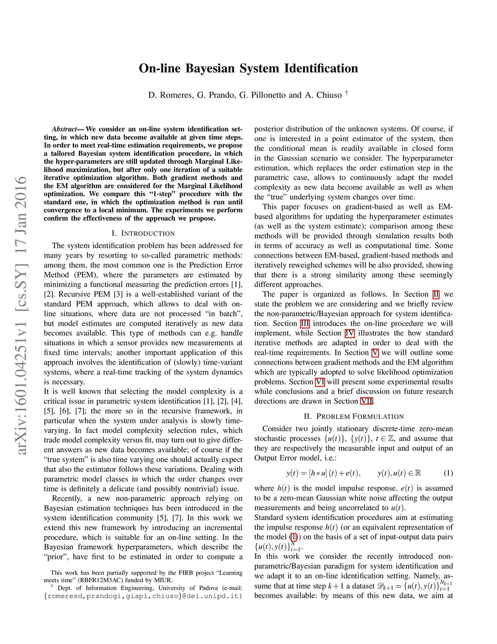 We consider an on-line system identification setting, in which new data become available at given time steps. In order to meet real-time estimation requirements, we propose a tailored Bayesian system identification procedure, in which the hyper-parameters are still updated through Marginal Likelihood maximization, but after only one iteration of a suitable iterative optimization algorithm. Both gradient methods and the EM algorithm are considered for the Marginal Likelihood optimization. We compare this "1-step" procedure with the standard one, in which the optimization method is run until convergence to a local minimum. The experiments we perform confirm the effectiveness of the approach we propose.