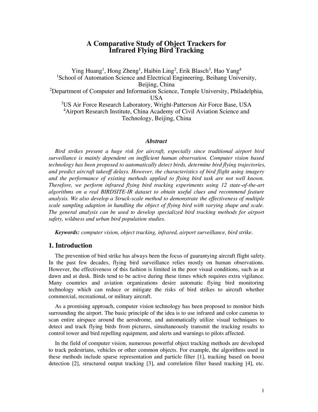 Bird strikes present a huge risk for aircraft, especially since traditional airport bird surveillance is mainly dependent on inefficient human observation. Computer vision based technology has been proposed to automatically detect birds, determine bird flying trajectories, and predict aircraft takeoff delays. However, the characteristics of bird flight using imagery and the performance of existing methods applied to flying bird task are not well known. Therefore, we perform infrared flying bird tracking experiments using 12 state-of-the-art algorithms on a real BIRDSITE-IR dataset to obtain useful clues and recommend feature analysis. We also develop a Struck-scale method to demonstrate the effectiveness of multiple scale sampling adaption in handling the object of flying bird with varying shape and scale. The general analysis can be used to develop specialized bird tracking methods for airport safety, wildness and urban bird population studies.