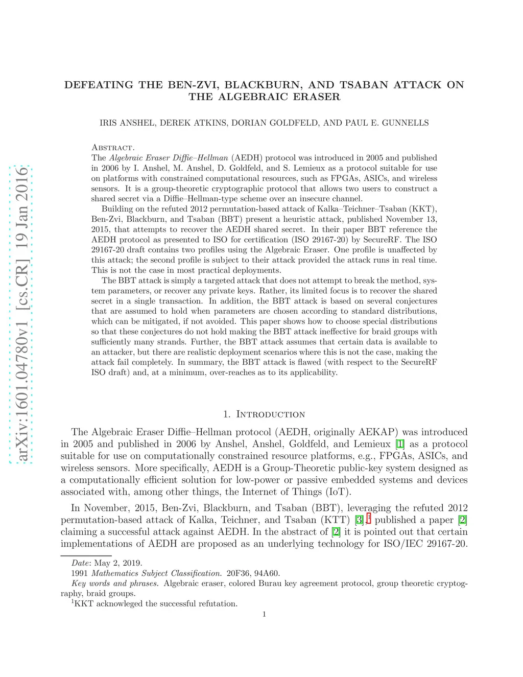 The Algebraic Eraser Diffie-Hellman (AEDH) protocol was introduced in 2005 and published in 2006 by Anshel-Anshel-Goldfeld-Lemieux as a protocol suitable for use on platforms with constrained computational resources, such as FPGAs, ASICs, and wireless sensors. It is a group-theoretic cryptographic protocol that allows two users to construct a shared secret via a Diffie-Hellman-type scheme over an insecure channel. Building on the refuted 2012 permutation-based attack of Kalka-Teichner-Tsaban, in 2015 Ben-Zvi-Blackburn-Tsaban (BBT) presented a heuristic attack that attempts to recover the AEDH shared secret. In their paper BBT reference the AEDH protocol as presented to ISO for certification (ISO 29167-20) by SecureRF. The ISO draft contains two profiles using the Algebraic Eraser. One profile is unaffected by this attack; the second profile is subject to their attack provided the attack runs in real time. This is not the case in most practical deployments. The BBT attack is simply a targeted attack that does not attempt to break the method, system parameters, or recover any private keys. Rather, its limited focus is to recover the shared secret in a single transaction. In addition, the BBT attack is based on several conjectures that are assumed to hold when parameters are chosen according to standard distributions, which can be mitigated, if not avoided. This paper shows how to choose special distributions so that these conjectures do not hold making the BBT attack ineffective for braid groups with sufficiently many strands. Further, the BBT attack assumes that certain data is available to an attacker, but there are realistic deployment scenarios where this is not the case, making the attack fail completely. In summary, the BBT attack is flawed (with respect to the SecureRF ISO draft) and, at a minimum, over-reaches as to its applicability.