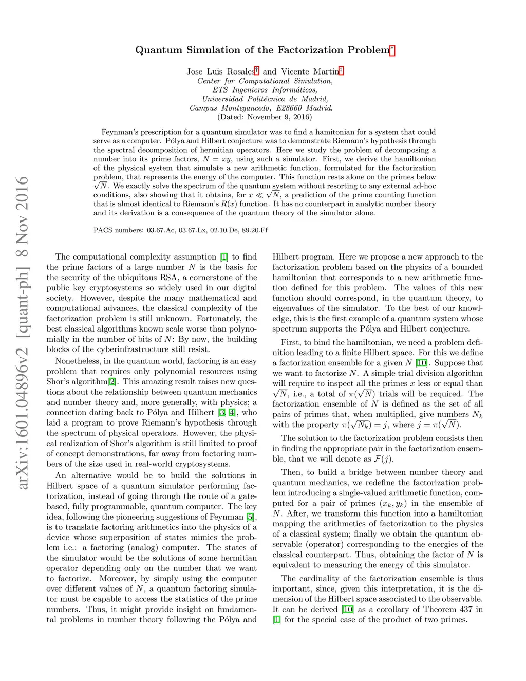 Quantum Simulation of the Factorization Problem
