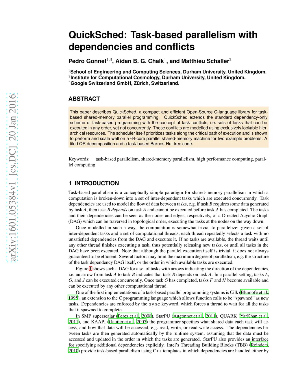 QuickSched: Task-based parallelism with dependencies and conflicts